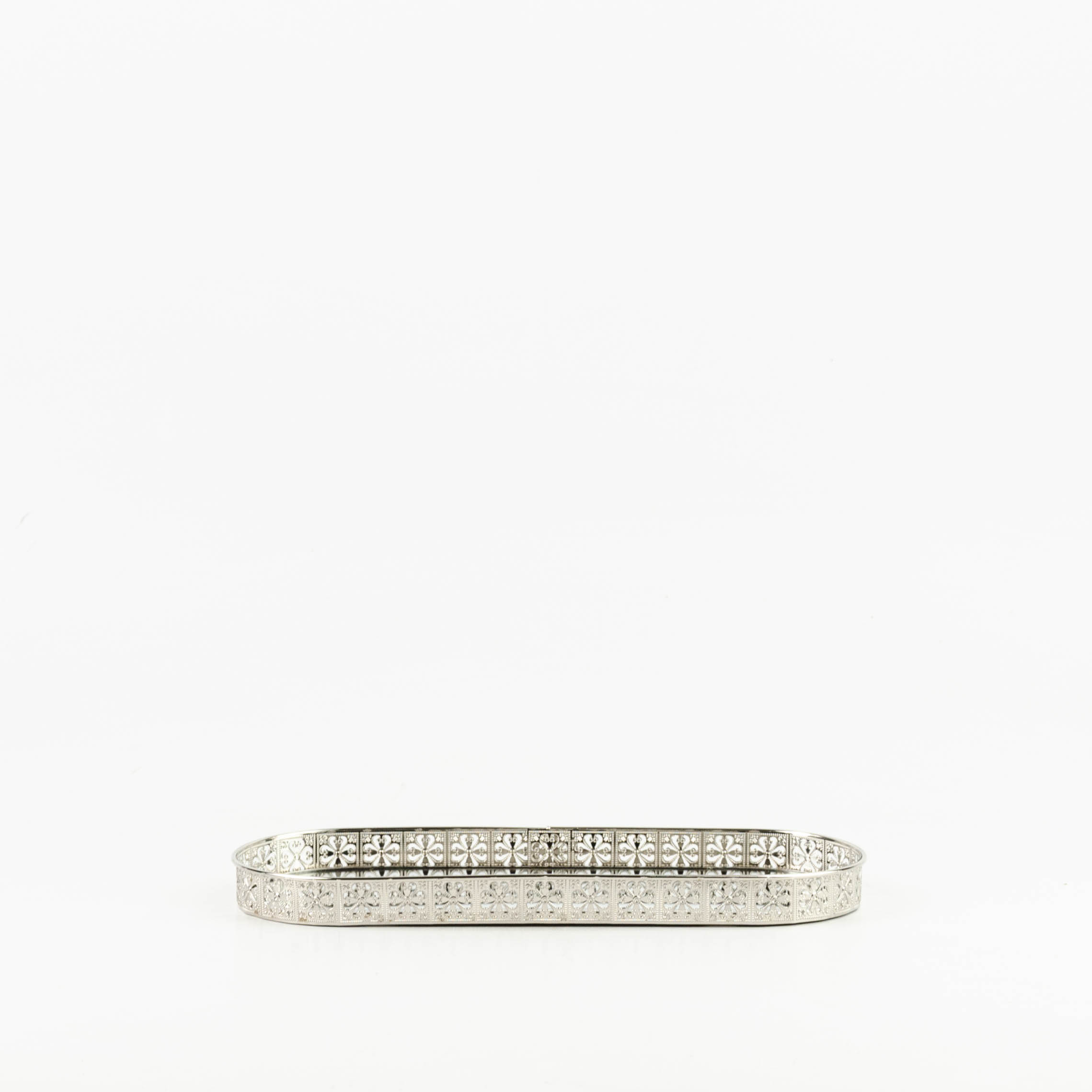 Questo raffinato vassoio a specchio decorato con dettagli traforati aggiunge un tocco di lusso e brillantezza a qualsiasi ambiente. Perfetto per esporre candele, profumi o piccoli oggetti decorativi, riflette la luce creando un’atmosfera elegante e sofisticata. Ideale per abbellire tavoli o consolle con stile.